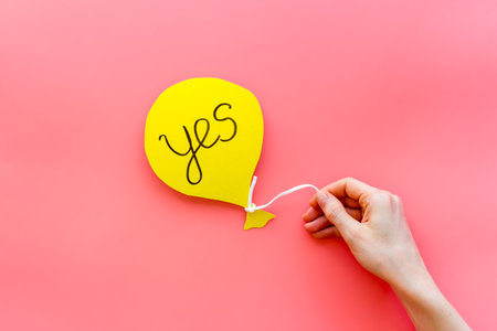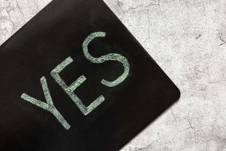 Yes agreement - decision concept. Word Yes on paper banner, top view