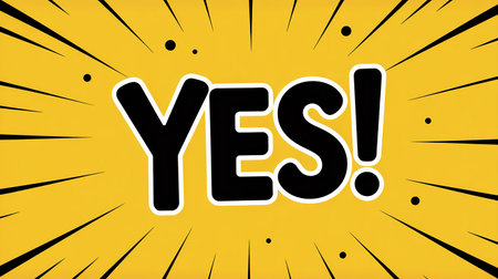 Bold YES text with exclamation mark on a yellow burst background with black lines and dots