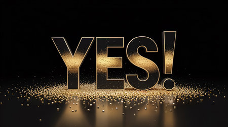 Bold black letters YES with gold glitter and reflection on a dark background Clear details and vibrant colors ...