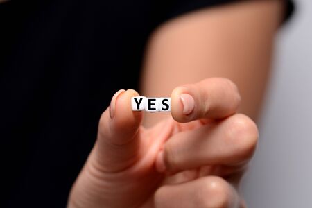 YES word from white plastic letter blocks in woman hand