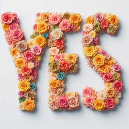 YES text formed fully by colorful roses with Generative AI.