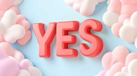 Playful Clouds Surrounding Bold Red YES on Soft Blue Background.