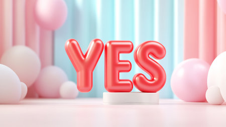 Bright Inflatable Letters 'YES' in Modern Pastel Balloon Themed Background.