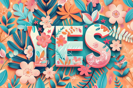 Colorful YES Typography Surrounded by Vibrant Floral Elements