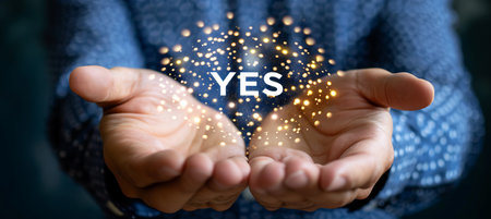 A bright and bold 'YES' stands out, radiating positive energy in soft hues.
