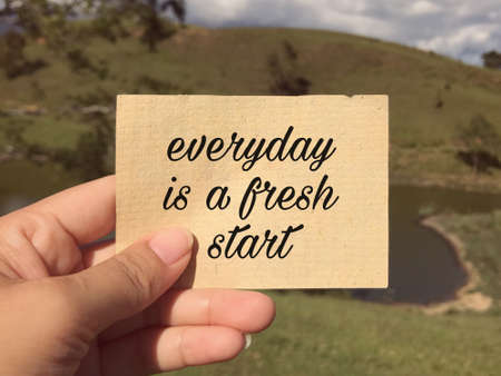 Motivational and inspirational wording - Everyday Is A Fresh Start written on a paper. Blurred styled background.