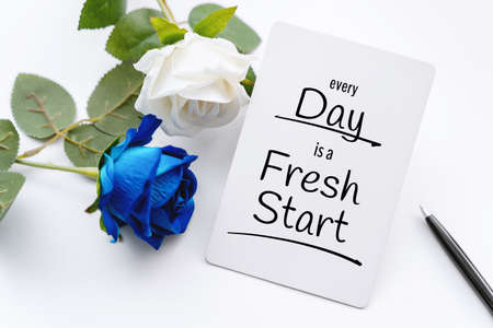 White Paper With Inspirational Quote With Rose Flowers Decoration. Every Day is A Fresh Start.