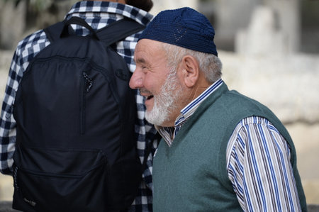 Senior man reading at wailing wall, old jerusalem city