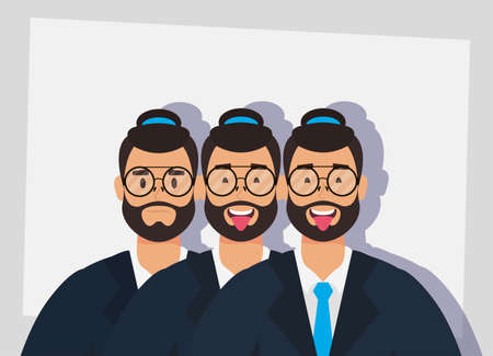 group of men bearded with hats and eyeglasses vector illustration design