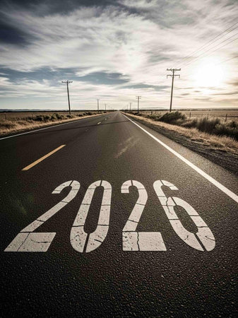 New Year 2026. Start 2026 written on the road of asphalt. Concept of planning, opportunity, hope, business strategy, new life change.