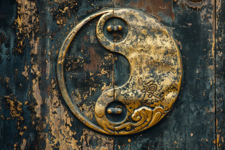 Yin-yang symbol on textured dark background