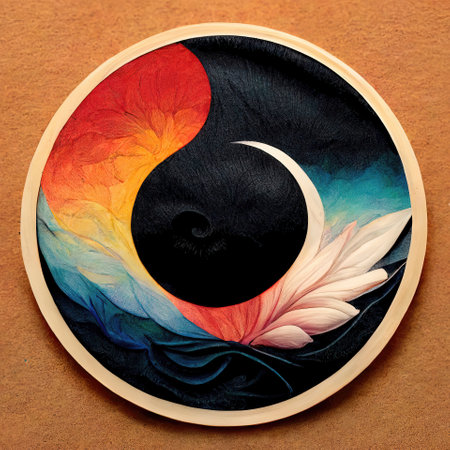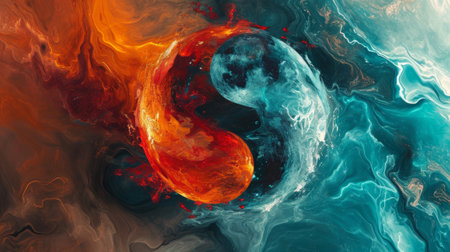 Yin Yang Painting Depicting Fire and Water Elements in Perfect Balance.