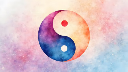 Yin and Yang symbol of harmony and balance on abstract colorful background