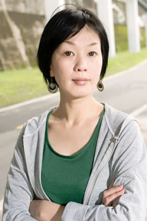 Portrait of sport mature Asian woman in outdoor in daytime.