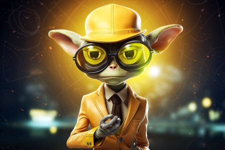 Funny alien with yellow hat and glasses. Generative Ai