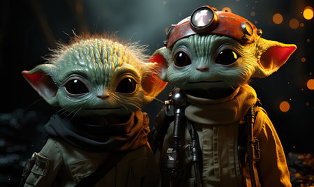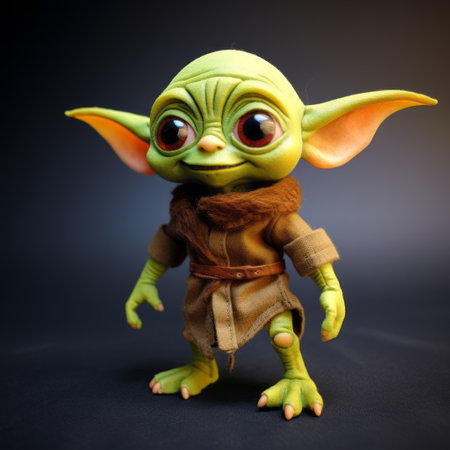 the little baby yoda figure from star wars is depicted in a colorful caricature style, reminiscent of artists such as bill gekas and goro fujita. this daz3d creation showcases dreamlike fantasy creatures in a mannerist style, capturing the essence of object portraiture. ai generated