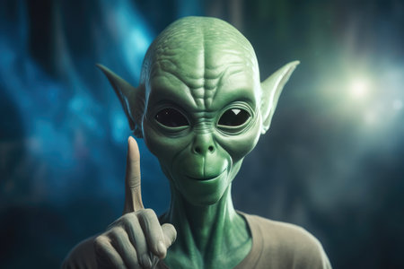 A friendly alien gives a thumbs up, adding a touch of humor and scifi intrigue to an otherworldly encounter