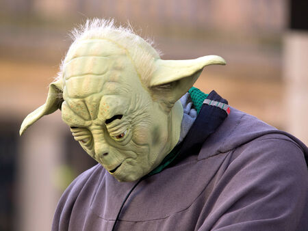 LONDON - JANUARY 21: Yoda figure posing with tourists on Covent garden in London january 21, 2014 in London,UK