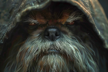 Mysterious Cloaked Figure with Intense Gaze Fantasy, Drama, and Secretive Mood for Thematic Visuals AI Generative