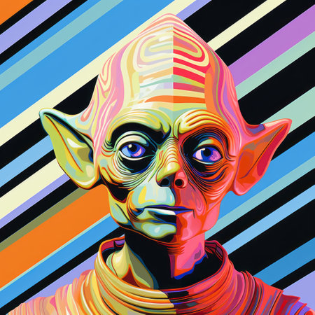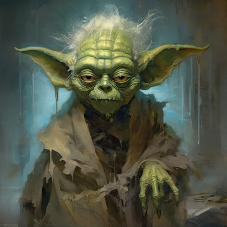 ewan mcgregor's original drawing of yoda in the star wars movies is a vibrant and visually striking piece of art. inspired by pop art, the illustration features saturated stripes and psychedelic imagery. with its dynamic color-field and detailed character design, the drawing captures the essence of yoda in a unique and captivating way. the metallic etherealism adds an extra touch of intrigue to this 8k
