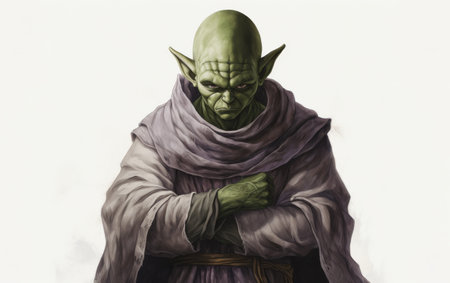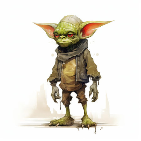 the goblin, a mythical creature from european folklore, is showcased in stunning detail in this algorithmic art piece, isolated on a pristine white background, offering an unobstructed view of its full body, complete with intricate features and textures, perfect for fantasy and mythology enthusiasts. ai generated