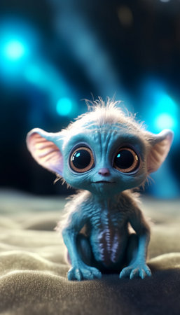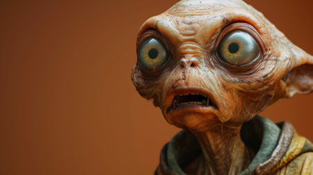 An AI generated illustration of a cartoon alien with a unique face and big eyes on a bright background