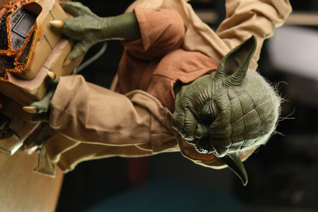 London, England, UK - January 2, 2020: Waxwork statues of Master Yoda from Star Wars, Madame Tussauds waxwork museum, one of the popular touristic attractions
