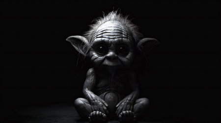 a little monster in the dark with a black background