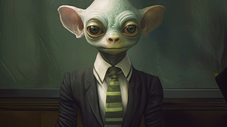a cartoon of a alien in a suit