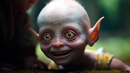 A close up of a creepy looking alien with big eyes, AI