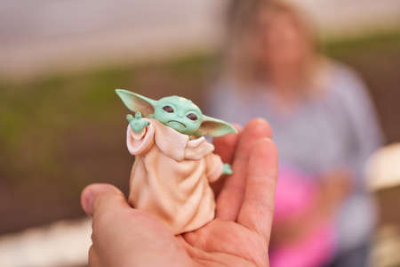 07/10/2020 Plastic figure of baby Yoda from the TV series Mandalorets. High quality photo