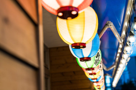 Chiang Rai, Thailand - January, 09, 2022 : Japanese red lanterns at a restaurant at Chiangrai Thailand.