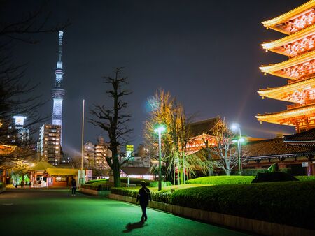 Asakusa, Tokyo, Japan - November 03, 2018 - Sensoji is an ancient Buddhist temple at night in Asakusa, Tokyo, Japan.