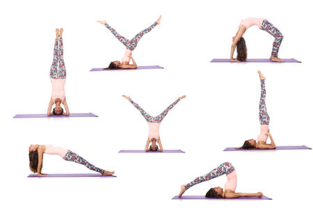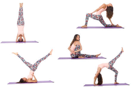 sport concept - beautiful slim woman in different yoga poses isolated on white background