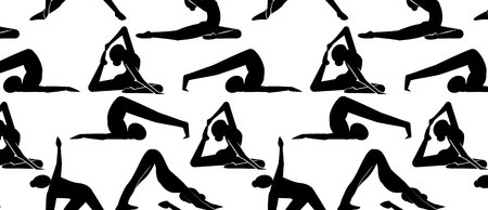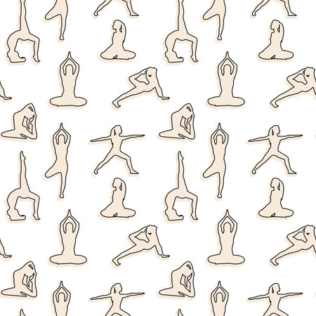 Seamless pattern with yoga poses. Vector illustration in flat style