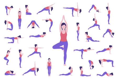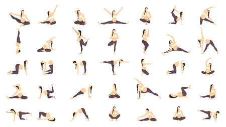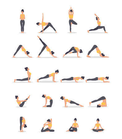 Set of yoga poses. Woman doing asanas. Vector