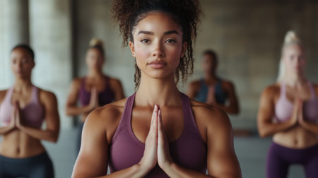 A yoga class practices a series of invigorating vinyasa poses created with Generative AI