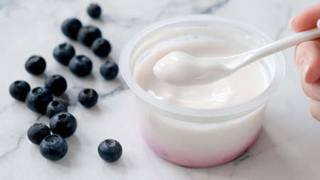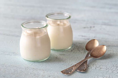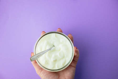 Natural white yogurt on the table. Healthy snack, Greek yogurt.