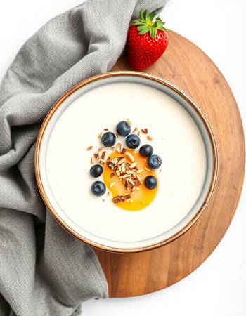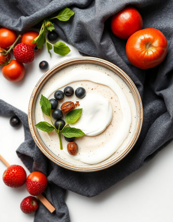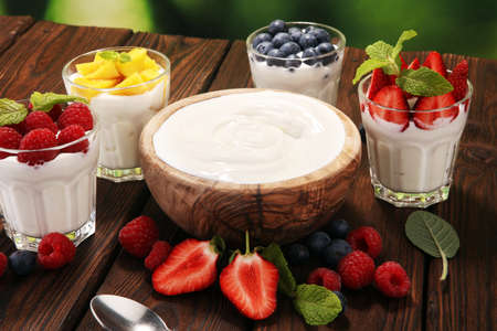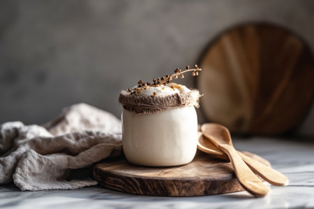 dairy and rustic farm food styled concept - fresh creamy white yogurt, elegant visuals