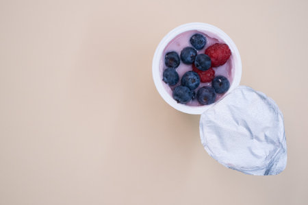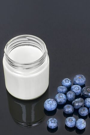 Fresh delicious yogurt made from milk with blueberry flavor, yogurt with fresh berries and blueberry jam
