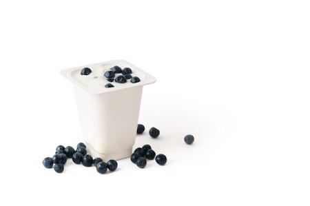 Yogurt with fresh berries on a white background. Healthy breakfast