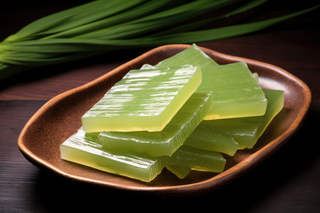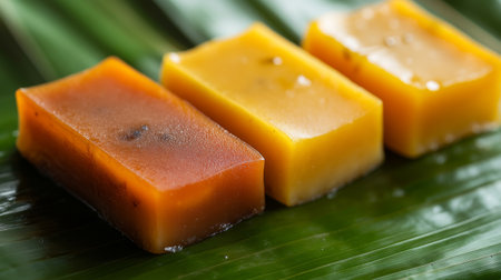 A vibrant, layered Thai dessert featuring the exotic flavors of coconut and pandan This colorful jelly is a visual feast, showcasing traditional and modern influences Made with natural ingredients, this refreshing treat is perfect for any occasion Enjoy the delightful textures and aromatic flavors of this unique dessert AI Generative