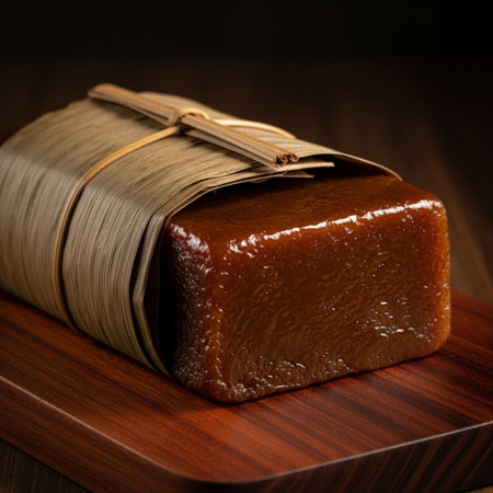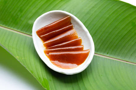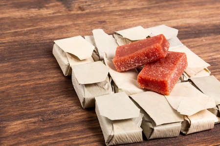 Guava Paste Wrapped in Bijao Leaf; Photo On Wood Background