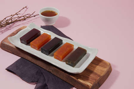 korean traditional dessert, red beans sweet jelly, jujube tea