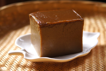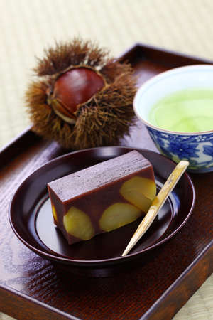 traditional Japanese confection, yokan kuri mushi, steamed sweetened adzuki bean paste with chestnuts