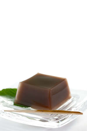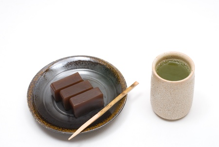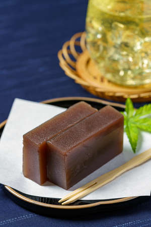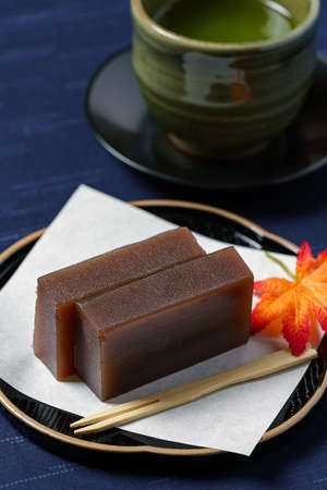 Japanese traditional confection 'Yokan' and cold Japanese tea