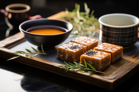 Japanese traditional confection 'Yokan' and hot japanese tea