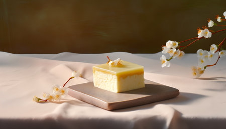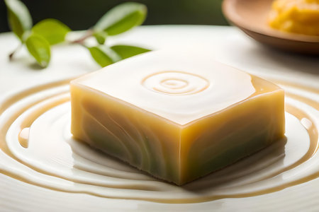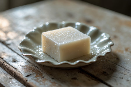AI Generative Bar piece natural organic aromatic cosmetic handmade soap on plate on wood background