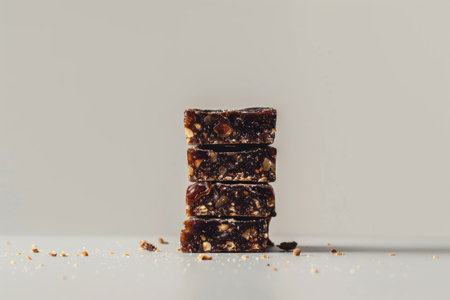 a scene highlighting guilt-free date and nut bars without added sugars, set against a pristine white background