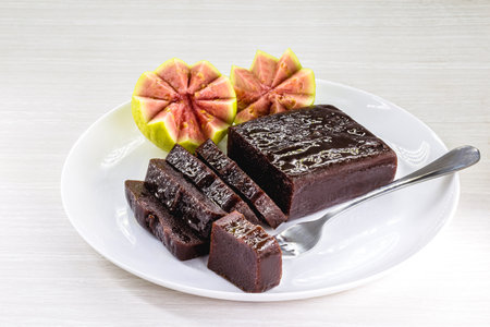 guava, sweet made from guava, homemade dessert, on rustic wooden background, sweet made from fruit, traditional of the June festivities in Brazil, rural food